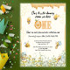 The scripted phrase “Our little honey soon to bee one” sets a joyful tone, with fully customisable serif-font party details to match your plans.