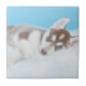Little Husky Puppy Laying on a Blanket Ceramic Tile