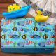 Add a cute nautical touch to the bathroom of your little boy or girl with this fun custom ocean pattern blue bath mat. Mat has an angel fish, clownfish, and other types of fish, as well as pretty background coral. At the bottom personalise with your young kid's name, or remove, per your preference.