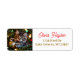 A sweet Christmas return address labels with a little kitten playing with a gold ornament on the Christmas tree.