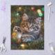 A sweet Christmas tissue paper with a little kitten playing with a gold ornament on the Christmas tree.