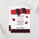 A cute design featuring a little ladybugs and a design of a polka dot bow and red hearts on a black background.Customise with your party information as desired.
