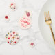 Cute party decor confetti for a ladybug theme girl's 1st birthday party. The text says "our little ladybug."