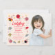 Cute girl's birthday party invitation card featuring illustration of ladybugs with wildflowers. The text says "our little ladybug is turning X." You can add a photo to this invite.