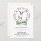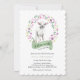 Little Lamb Baby Shower invitation with green banner - perfect for spring, easter or a girl baby shower at any time of the year. The design features a cute little white lamb framed with a wreath of doodle flowers and leaves and lettered with "A little lamb is on the way". Please message me if you would like this design for matching products.
