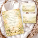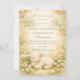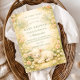 A timeless, heirloom-inspired design featuring a peaceful sleeping lamb framed within a delicate oval wreath of soft meadow florals. Tiny ivory and blush blossoms with airy greenery create a romantic botanical border against a warm parchment background. The gentle shading and antique storybook feel give this design a refined, elegant presence — perfect for a classic, neutral, or spring celebration. Soft, sentimental, and effortlessly graceful.