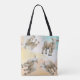 Knitting life project bag with all-over lamb design. Watercolor in pastel colors is the background. Buy as an open, lined tote, or cross-body bag with adjustable strap. Read more about each bag type in the product description. The bag with pockets makes a nice knitting, or crochet, project bag.