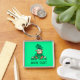 This key fob features a little green leprechaun and customisable text to personalise it.