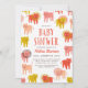 A pride of cheerful, mid century inspired, illustrated lions invite guests to celebrate the new mum and little one to be with this vertical baby shower invitation in a variety of warm pinks, red oranges and yellow. The text is easy to personalise and the backer has an extra special pop of colour with a coordinating stripe pattern. Don't forget to shop the entire Little Lions collection for additional party decor and gift ideas! Original illustration by Ashley Peterson of 2birdstone.