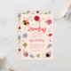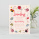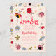 Cute girl's baby shower invitation card featuring illustration of ladybugs, flowers, and stars. The text says "a little love bug is on the way."