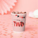 Our Little Love Bug is Turning Two Ladybug Paper Cups. Watercolor Ladybug 2nd Birthday Cups on Light Salmon Pink.