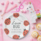 This cute and modern girl baby's birthday plate features a white background with ladybugs. Personalise for your needs. You can find more matching products at my store.