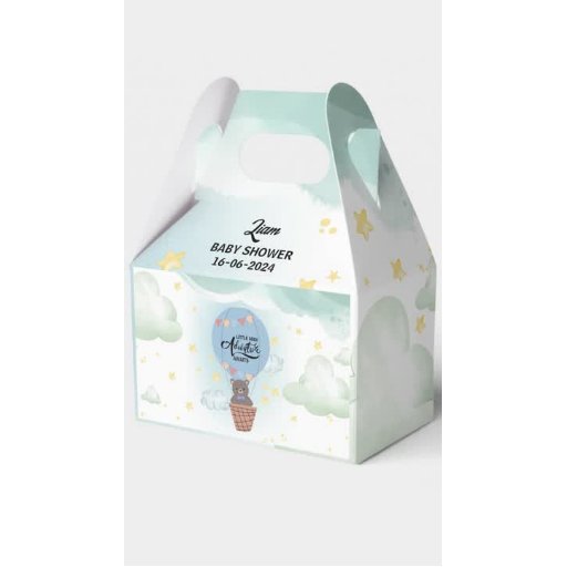 little man adventure awaits thank you card bear balloons blue brown beige twinkle stars