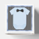 Little man baby shower boxes with adorable baby blue shirt and black bow tie on a black and grey pinstripe background. You can personalise by adding text in the font style and colour of your choice. You can also change the background colour.