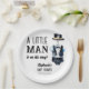 Little man baby shower cute black tuxedo with a bow tie and a hat baby shower monogrammed customised paper plates template personalised baby shower decor customised paper plates Little Man baby shower party supplies personalised printed party plates