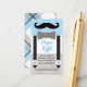 I love this cute little man baby shower theme diaper raffle card featuring a moustache, bow tie, and suspenders in a baby blue and grey colour scheme with a plaid backside. Matching items in store!