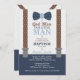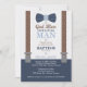 Little Man Baptism Invitation, Navy Blue, Brown Invitation