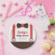 Party supplies paper plates designed to look like a gentleman outfit. It features a dark brown bowtie with white polka dots and a pair of red straps suspenders. Perfect for mummy to be who is expecting a baby boy! Personalise easily with your baby shower message!