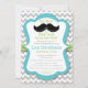 It's a moustache baby shower! This invitation features a fun hipster moustache with teal frame and grey chevron background. Oh Boy!