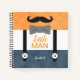 I love this little man baby boy shower theme guestbook featuring a moustache, bow tie, and suspenders in an orange and navy blue colour. Matching invitation and decor in store!