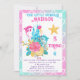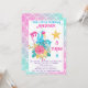 Girly pink, turquoise and white Little Mermaid under the sea birthday party invitation. Easily add the name of the birthday girl, and the date, time and address of the birthday party.