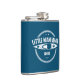 The flask itself is fine. It’s a cheap flask, obviously bought in bulk, however am prepared to overlook that. Given that it is a personalized item, I would have liked to have seen gift boxing instead of the generic packaging. Terrible printing, and/or quality. It’s a cheap, tacky vinyl. It is not cut straight and is also applied in a way that it is overhanging the bottom, causing the glue to catch on items and it will eventually roll and tear, damaging the wrap.