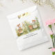 This baby shower favour bag features a delightful garden scene with two anthropomorphic mice dressed in floral outfits, each holding a basket brimming with apples. One mouse wears a cheerful orange polka-dot dress, while the other dons a white dress adorned with orange flowers and a matching bow. They stand amid lush greenery, scattered apples, and blooming plants, creating a warm, whimsical atmosphere that feels straight out of a storybook. The soft illustration style and charming details make the bag a perfect keepsake for a celebration filled with sweetness and woodland charm.