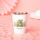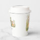 These paper cups feature a soft, inviting design centred around a charming cottage with a thatched roof, nestled among lush greenery and blooming flowers. On either side of the cottage stand two anthropomorphic mice dressed in cheerful orange dresses, surrounded by delicate floral details. The background is a warm beige, giving the overall scene a vintage, storybook feel. The layout is clean and balanced, with space for personalised text, making it ideal for themed celebrations with a whimsical, woodland touch. Personalise with your own information