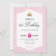 Celebrate her first birthday in style with this glittery pink and gold invitation, perfect for your little princess.