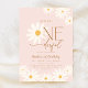 Little miss onederful daisy 1st birthday party invitation. Cute design in blush pink. Features daisy flowers and trendy modern typography script font. Perfect for a stylish boho first girls bday celebration. Personalize with your own details. Printed Zazzle invitations or instant download digital printable template.