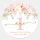Little Miss ONEderful Pink Roses First Birthday Classic Round Sticker