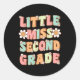 Little Miss Second Grade Cute Groovy First Day of Classic Round Sticker
