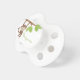 Custom designer baby pacifier features a beautiful and funny monkey on a tree vector illustration and can be personalised with your baby's name or any text of your choice.
