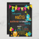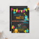 A great way to invite your guests to your little one's birthday. This invitation has a chalkboard black background with a monster theme. Colourful monsters, stars, presents to celebrate a birthday. Personalise this invitation with your party information. Customise the font style, colour, or size. Check out the other designs and products in this collection in our store.