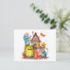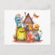 Little monsters build a house. Housewarming party. Postcard