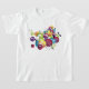 The t-shirt features a tumble of monster illustration. Fun and cute!