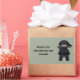Adorable chubby yet fearsome looking little ninja is dressed in black outfit and carrying katana - traditional Japanese sword.