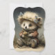 This charming creature of the forest was spotted among delicate flower-like petals in a whimsical chibi art style. With a sweet half-smile and ears peeking through a muted-coloured floral hat, this adorable little being wears a red jacket over a dark peasant dress, clutching a dried flower. #EnchantingWoodlandBeings #ChibiArtistry #NaturalBeauty #OverflowingCuteness #FlatNoteCards #Notecards
