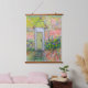 Created in mixed media, this pretty little whimsical oriental house is displayed with various vibrant colors as flowers fill its surroundings.