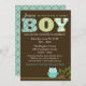 Little Owl Baby Boy Shower Invitation, Pattern Invitation