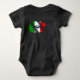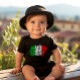 Introducing our hilarious baby black bodysuit featuring a whimsical, waving brushstroke illustration of the Italian flag and the cheeky term "Paisan." Picture your little one proudly donning this adorable outfit at your next Italian gathering! It's not just a cute piece of clothing; it's a lighthearted nod to cultural humour, creating a delightful paradox between the baby's innocent charm and the playful reference to Paisan, meaning "townsperson," "neighbour," or "homie" in Italian. This funny gift not only adds a touch of wit to your little one's wardrobe but also sparks laughter and connection, making it an amusing and memorable choice for both Italian families and those who appreciate a good chuckle.