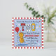 Cute baby peanut with a big red balloon, a big number TWO in red, white and yellow and white and red and white checked border make these fun 2nd birthday party invitations special. Customisable text to add your own child's name and party information. Also available on T-shirts and gifts. PinkInkArt original!