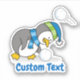 A little penguin cartoon bending to get a snow ball avoiding another one. Custom text.