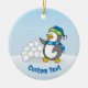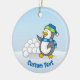 Little Penguin with Snow Balls Waving Ceramic Ornament