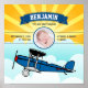 Baby room birth announcement Poster featuring modern typography and a cute airplane on a bright sunrise background. Add all your lovely details on this easy-to-use template and adorn this Poster with your favorite baby's photo.