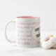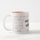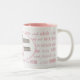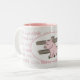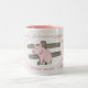 A forlorn-looking little pink piglet sits by a split rail fence in the digital watercolor in a pink-bordered oval at the centre of this mug. The background is filled with the word “oink” over and over in various fonts in pink. A great gift for anyone with a pig collection. From my original digitally-created image.