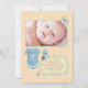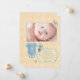A lovely birth announcement in pale yellow and white check features a blue "T shirt" with a little crown and the word "Prince" printed on it. It's paired with a baby flourish to hold your personalisation. A balloon bouquet and butterflies complete the welcome. The card is easy to customise with your wording, font, font colour and choice of six paper types.