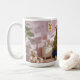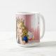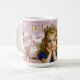Artistic mug featuring a golden-haired girl with a jewelled crown in a pink fairytale bedroom, symbolising innocence, imagination, and royal charm.
