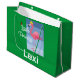 Little Princess Pink Flamingo Design - Kelly Green Gift Bag - Large