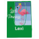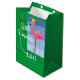Little Princess Pink Flamingo Design - Kelly Green Gift Bag - Medium